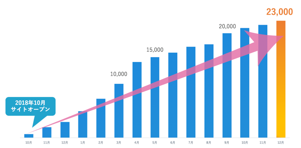 サイトOPEN 以降、掲載数とレビュー数は右肩上がりに増加
